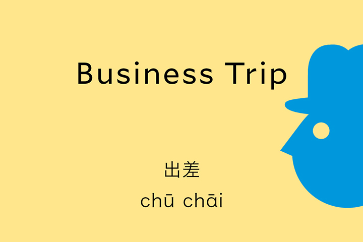 The Chinese word for “business trip” is 出差 where the first word 出 means “to go out” and the second word 差 means “to be sent” so when you are “sent out” then you go on a business trip 出差!