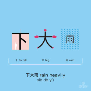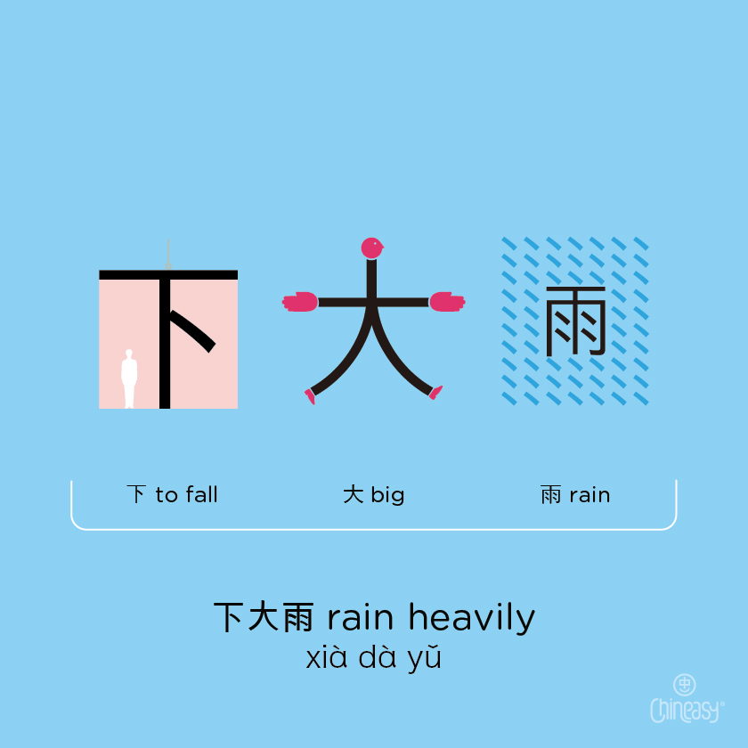下大雨 pinyin: xià dà yǔ; rain heavily
