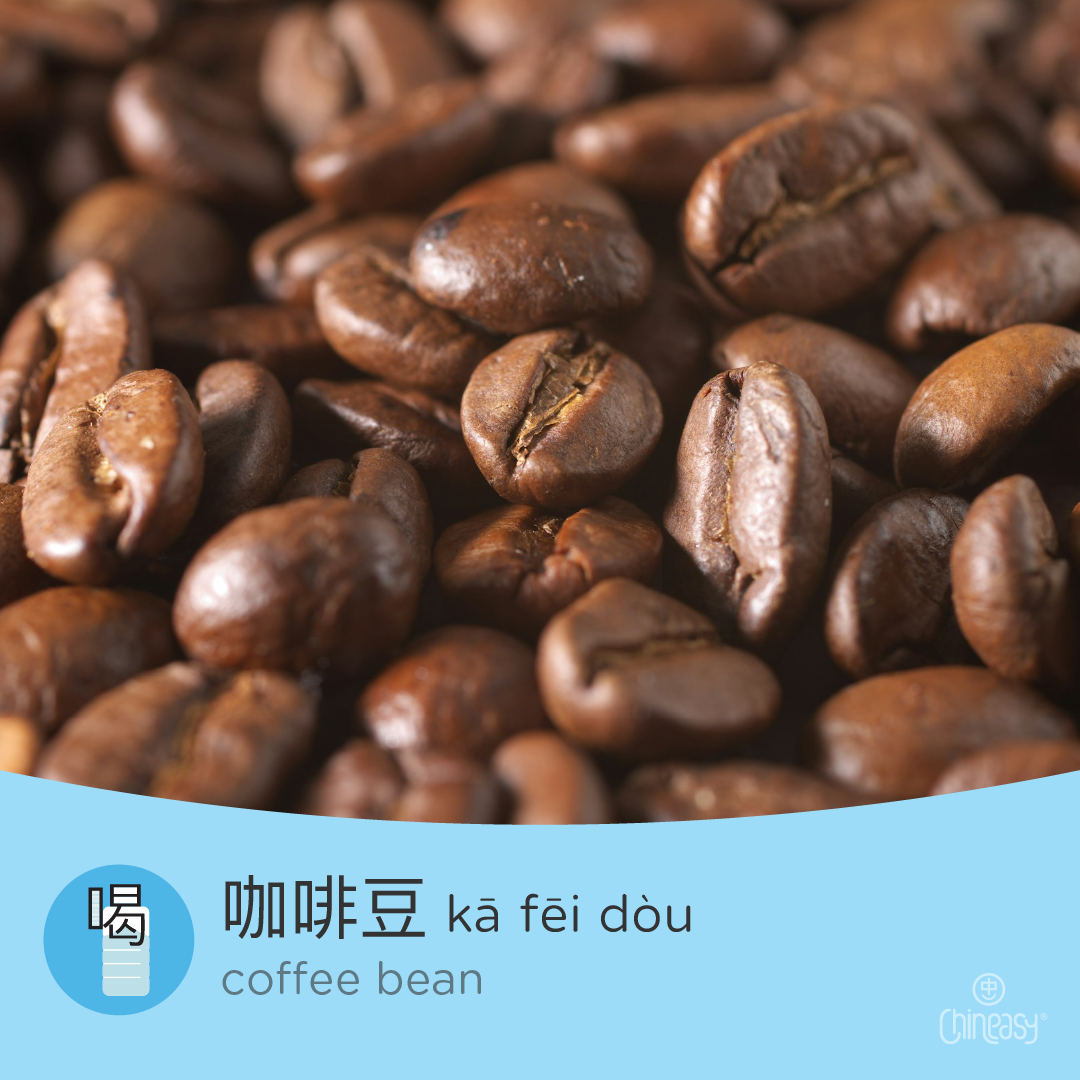 To say “coffee bean” in Chinese, it’s 咖啡豆 (kā fēi dòu). 咖啡, as you just learned, is “coffee” and 豆 means “bean.”