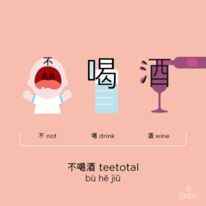 不喝酒 pinyin: bù hē jiǔ; teetotal