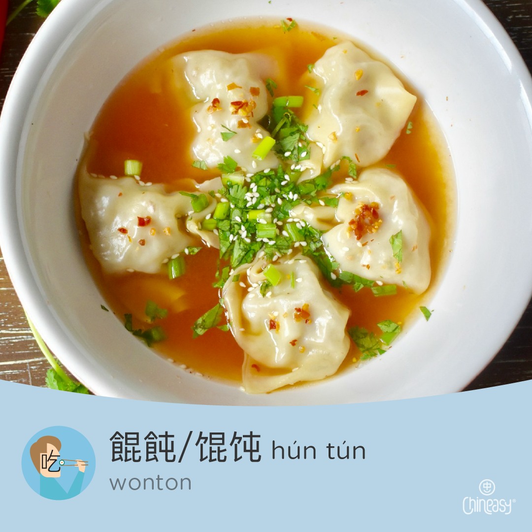餛飩/馄饨 also goes by different names across China, depending on the region, including 扁食/扁食 (biǎn shí), 雲吞/云吞 (yún tūn), and 抄手 (chāo shǒu). The English term “wonton” is more closely related to the Cantonese pronunciation 雲吞/云吞.