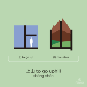 To go uphill – 上山 (shàng shān)