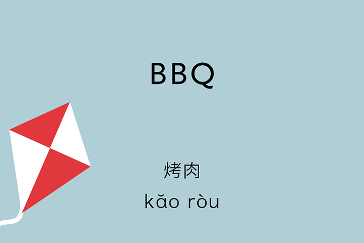 The way to say the verb “to barbecue” in Chinese is 烤肉. It’s a very logical word because 烤 means “to roast” or “to grill” and 肉 is the word for “meat.” When you roast meat, you 烤肉!