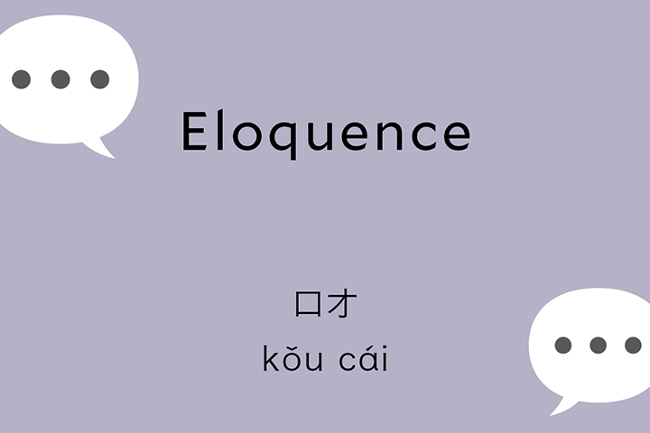 The way to say “eloquence” in Chinese is 口才. The first character 口 means “mouth” (and kind of looks like a big mouth wide open), the second character 才 means “talent,” so when you have the “mouth talent” 口才, then you are eloquent!