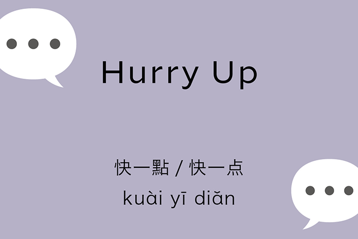 The way to say “hurry up” in Chinese is 快一點/快一点. The first character 快 means “fast” and 一點/一点 means “a little” so putting these together we get the phrase “a little bit faster.”
