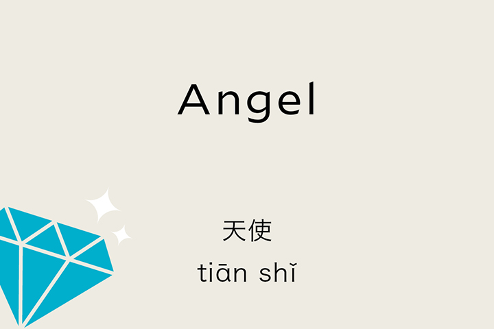 The Chinese word for angel is 天使. The first character means “sky” or “heaven” and the second character means “messenger,” so the “messenger from the heavens” is the “angel”, 天使!