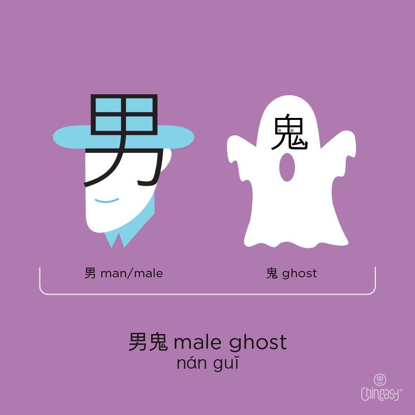 男 (man/male) + 鬼 (ghost) = 男鬼 (nán guǐ; male ghost)